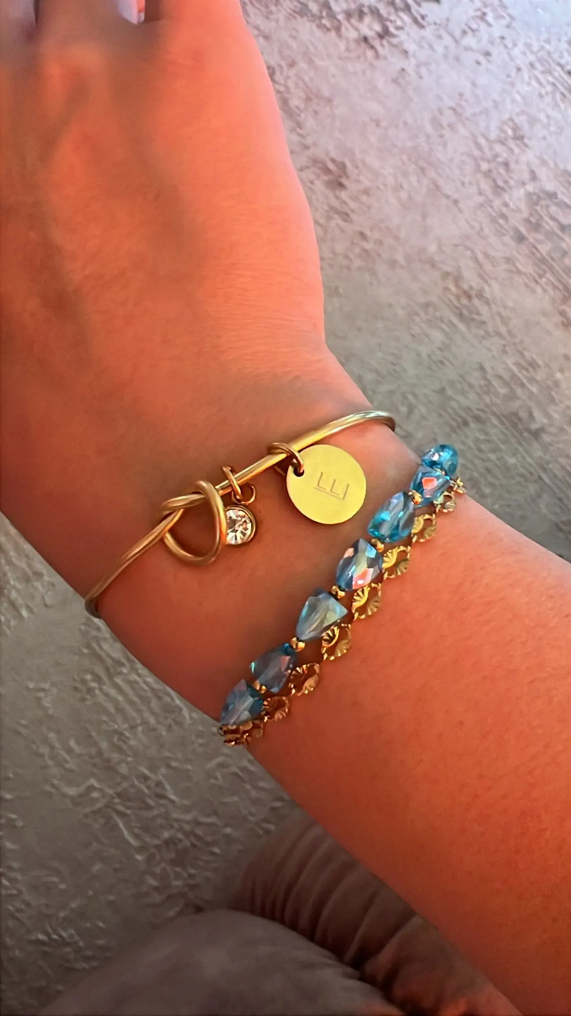14K Gold Plated Birthstone Initial Bracelet – Elegant Love Knot Cuff for Women
