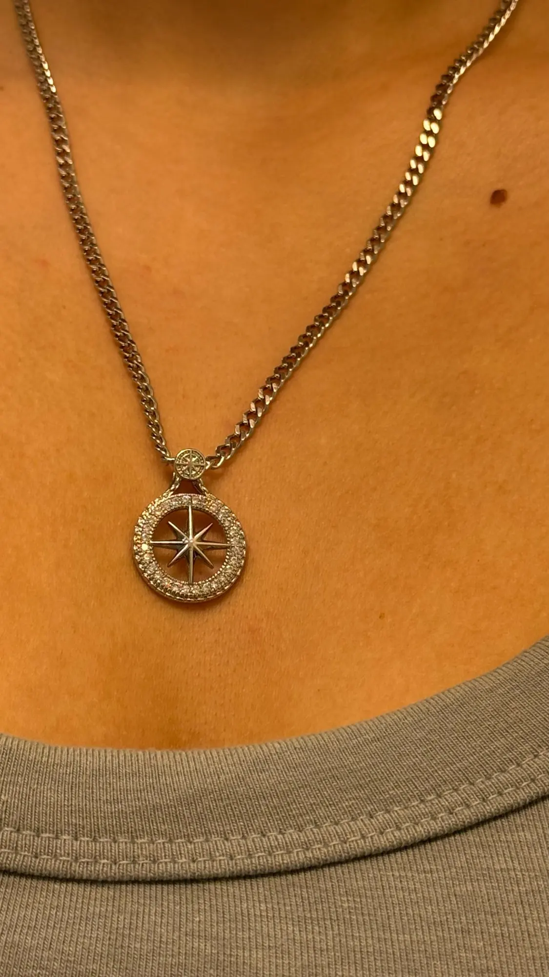Crafted from durable titanium steel and finished with rich 18K gold plating, the compass pendant is encrusted with shimmering cubic zirconia for maximum shine. Itβs tough, trendy, and ready for anything β just like you.