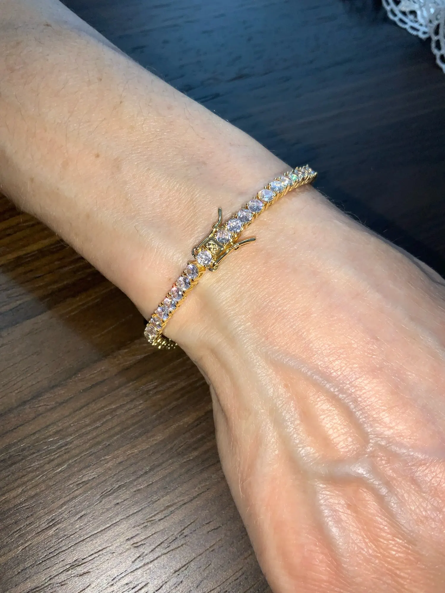 Each stone is expertly set to catch light from every angle — no dim, cloudy sparkle here. And forget about fiddling clasps that ruin the moment: the double-buckle design offers both a flawless finish and secure, all-day wear.