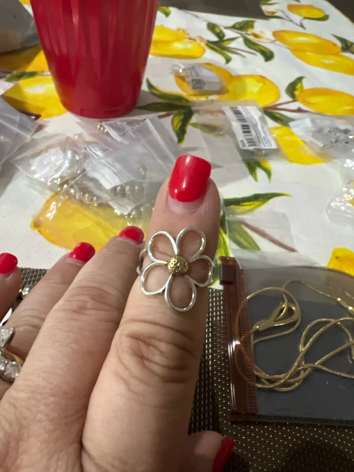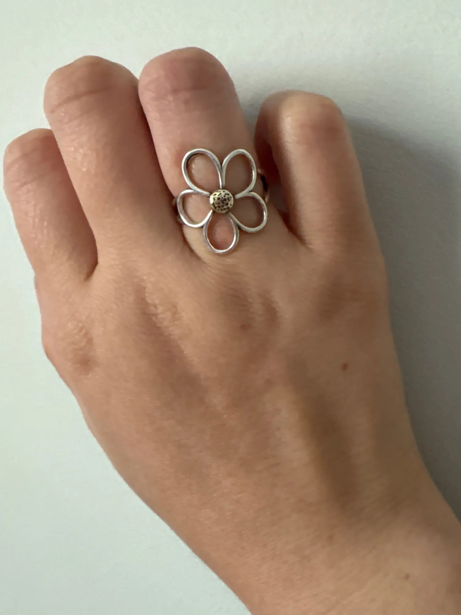 The flower is smaller than in the photo, it's not a large ring but regular size, the material feels very thin.